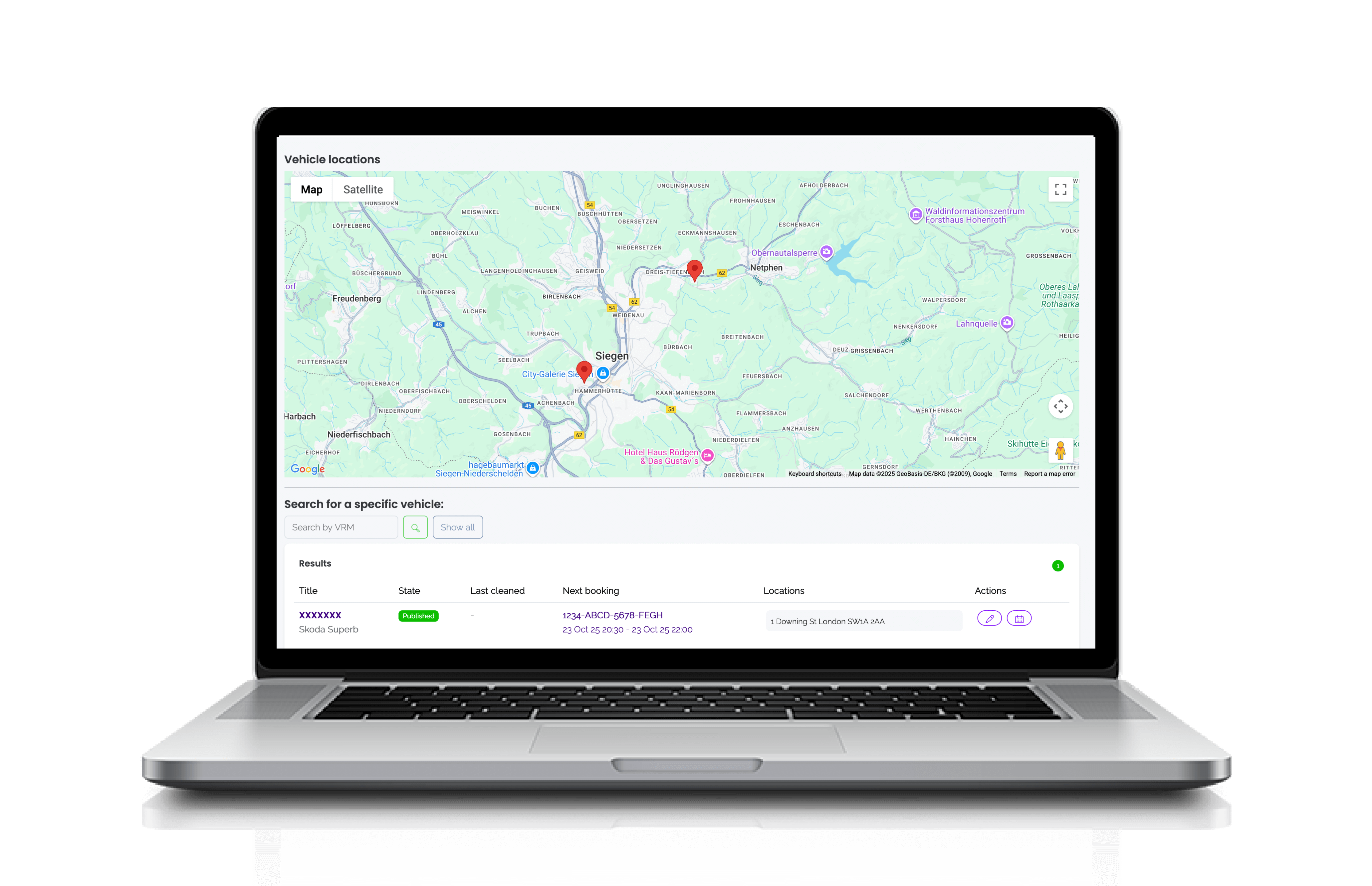 View the live location of vehicles in your fleet, track which cars are on active bookings, view upcoming bookings, and manage vehicle availability across multiple locations.