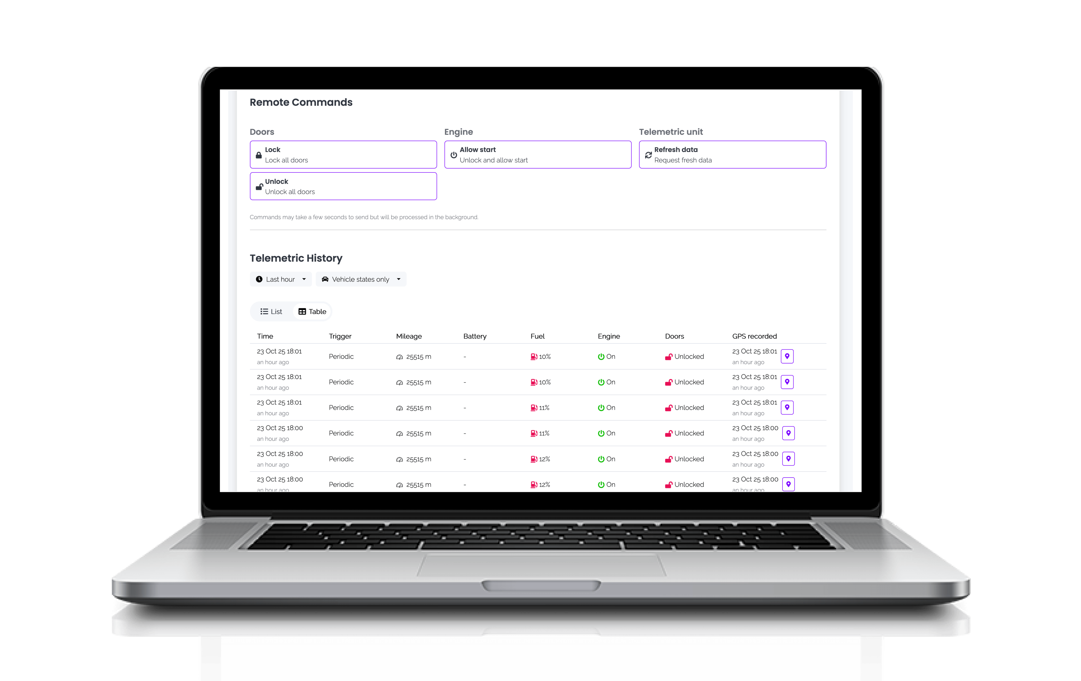 Use QuickStart™ remote commands to unlock vehicles, monitor telemetric data, and track vehicle health.
